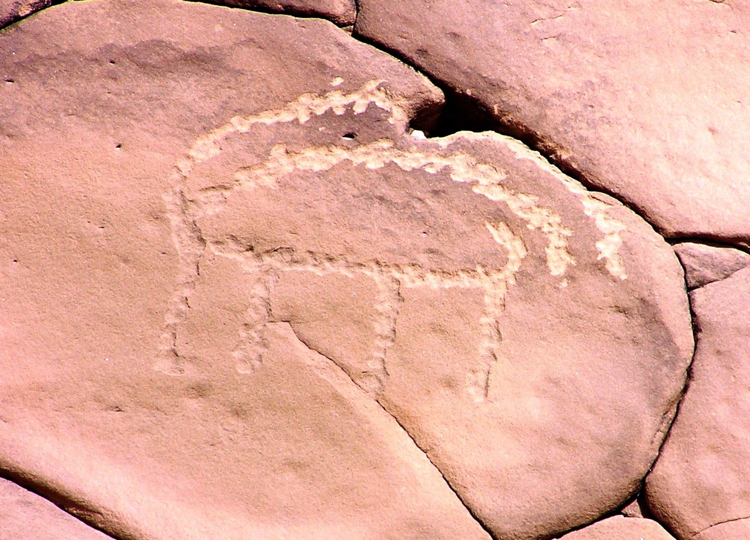 آڏو ھڪ ننڍڙي قدرتي غفا ھئي؟ ”ڇا اھا اوائلي ماڻھوءَ استعمال ڪئي ھوندي؟“ بخاري صاحب اُٺ تان ويٺي ويٺي پڇيو. مون ان وڏا ڪماني دار سِڱَ پڇ کان پوئتي تائين وريل ھُئس. ۾ اسان ٿورو ئي اڳتي ھلياسون ته پڪ ٿي، ’ ھيءَ جاءِ تڪڙ ۾ پوئتي نه ڇڏي نه ٿي سگھجي! ھتي باقاعدي سلسلو ٿو لڳي!‛ اسان چوڌاري نظرون ڊوڙايون ته ھر طرف ڇِڳل ڇِپن تي ڇڊا ڇڊا چِٽ نظر آيا ، ڪي اڌورا ته ڪي پُورا. ”ھي ته ڪو شڪاري ٿو لڳي! ٽي چار سرھه قطار ۾ شڪاريءَ طرف منهن ڪري بيٺا آھن ۽ شڪاري ڀالو تاڻيو بيٺو آھي!“ مون بخاريءَ جو ڌيان ڇڪڻ جي ڪوشش ڪئي پر بخاري صاحب ڪنهن ٻئي چِٽ جي تصوير ڇڪي رھيو ھو.