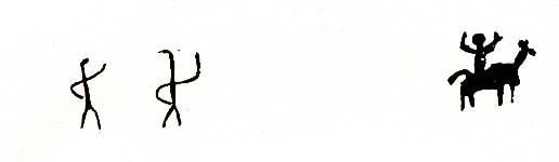 ھتي اڪثر منظر تلوار بازيءَ جا ھئا- ٿلھيون لِيڪون ھيٺ ھلي ٻن شاخن ۾ ورھائجي ٿي ويون ۽ اھي انساني ڄنگھون ٺھي ٿي پيون- مَٿو گول ھنداڻي جھڙو- ھڪ ھٿ ۾ گولائي دار تلوار ۽ ٻئي ھٿ ۾ ڍال! اڪثر ھنڌن تي ٻه ٻه ماڻھو ھڪٻئي جي آمھون سامھون چٽيل هئا-